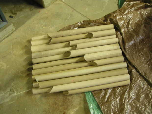 Consejo: Ya que estos tubos están hechos de cartón que pueden rasga-hacia fuera fácilmente, dejando un corte desordenado y desigual. En general, había aserrado la mayoría de la manera a través del tubo y entonces anotó la parte inferior (con una sierra o exacto) antes de cortar el resto del camino.