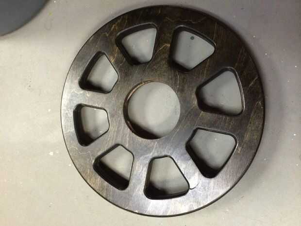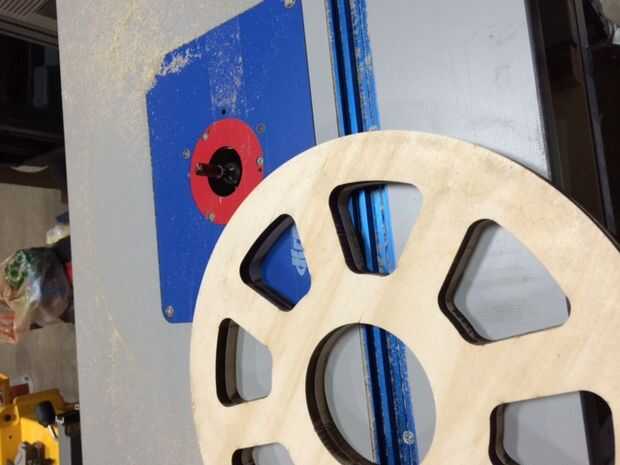 El siguiente paso en la construcción de la tabla es la base que soportará todo. Para que sea resistente, elegí otra vez para una capa de dos 1/2" piezas de madera junto. El diámetro de mi base es de 18". En el centro cortar un agujero como en la parte superior que podría Deslice el tubo del centro. La única diferencia esta vez es que corte todo en capas. Después de instalar las dos mitades, envían todos los bordes para proporcionar un seguro y limpio fin. Este es un extra que paso cuando se hace derecho realmente mejora el acabado de su mesa.