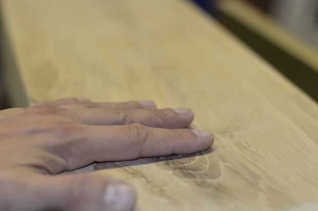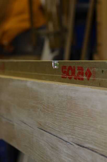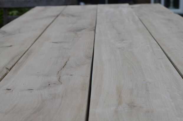 Después de la inspección en la casa decidí usar el uno rayo que vino de un árbol diferente que el medio (difiere ligeramente) para mantener la mesa espejada. Los demás tendrán una aleatoria. Las vigas habían estado poniendo (protegido de la lluvia) exterior durante nueve años, por lo que la madera era muy cruda.