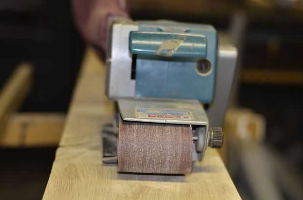 Decidí usar una lijadora de banda (Makita 9903) para obtener las vigas en forma. Utilicé cintas de grano 40 para esto.