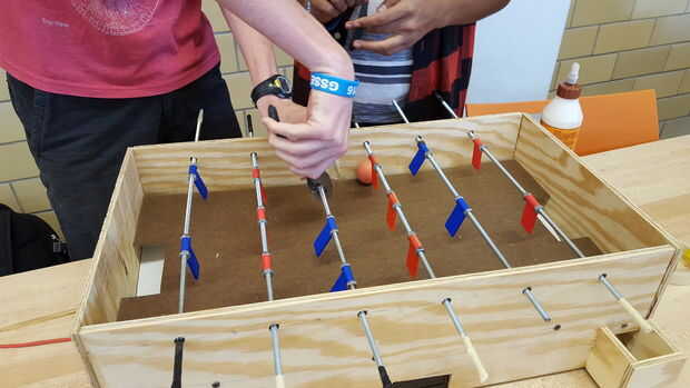 Este será el campo de juego. Después de cortar los agujeros, coloque la Junta en la "caja" que es la estructura principal de la tabla.