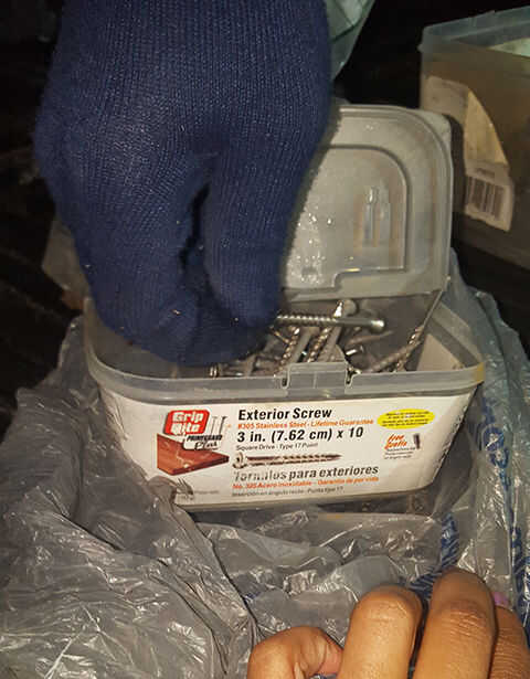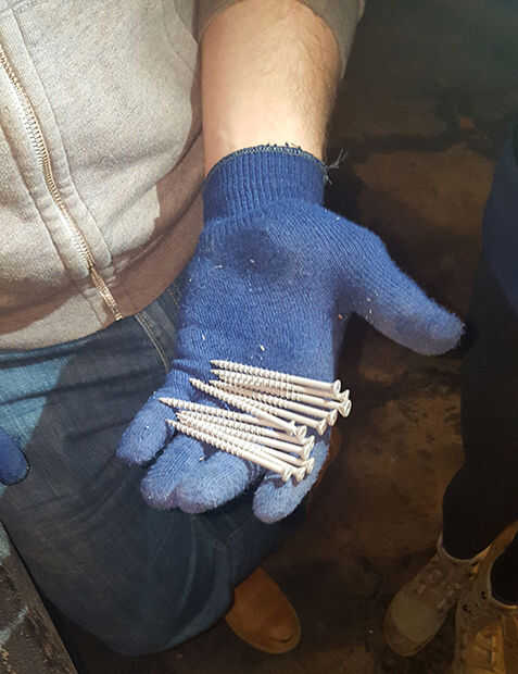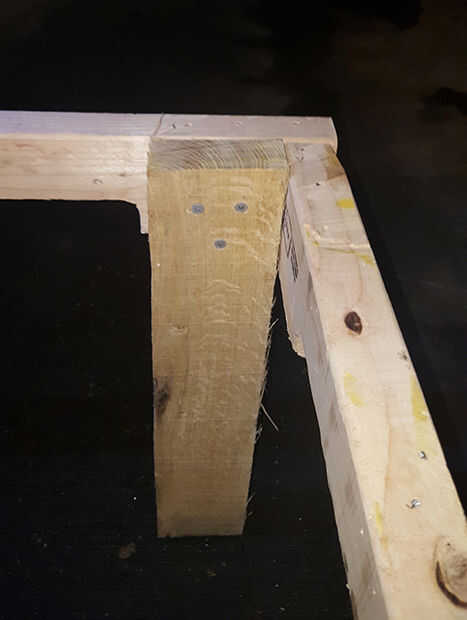- Importante: plataforma madera es duro, por lo que una vez que la actual perforación previa con los tornillos se ejecutan, aplicar las paletas ahora previamente perforadas en el marco de elimina la rotura.