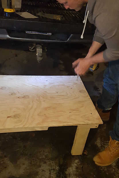 Se necesita: Taladro eléctrico y 4 tornillos y madera contrachapada (48 "x 24").