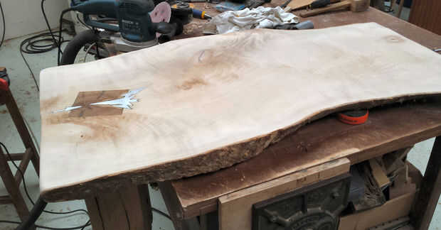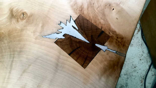 1. el epoxi negro parece haber sido un poco demasiado que moquea y fue absorbido por el grano de la tapa de tabla un poco - haciendo marcas aspecto sucias en algunos lugares el aluminio - estos voluntad nunca desaparecen, por mucho lije :(