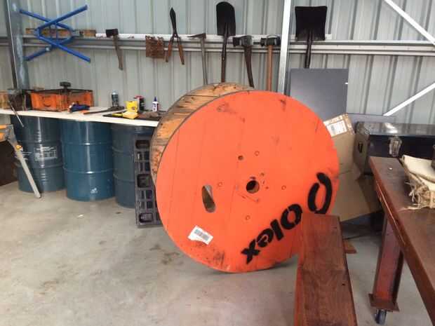 Siguiente paso es cortar el material sobrante de los pies de la mesa. Yo simplemente escogió un lugar razonable dado la colocación de todas las uñas etc y mide hasta qué punto fue desde el borde del tambor. Entonces solo fui redondo y marcado offf longitud completamente redonda para obtener mi línea de corte.