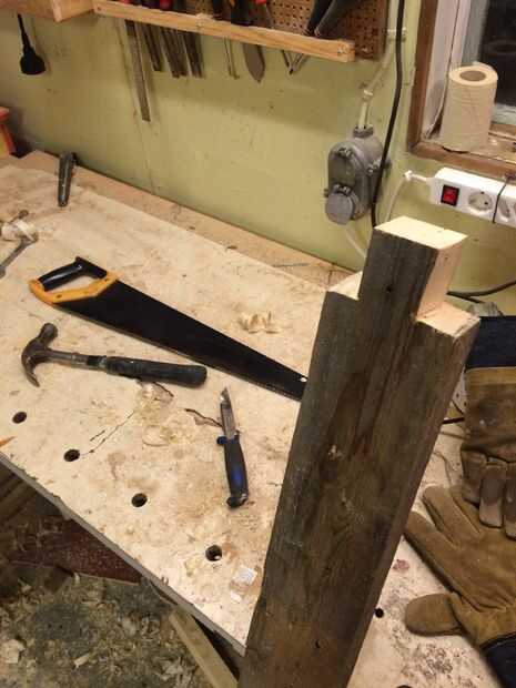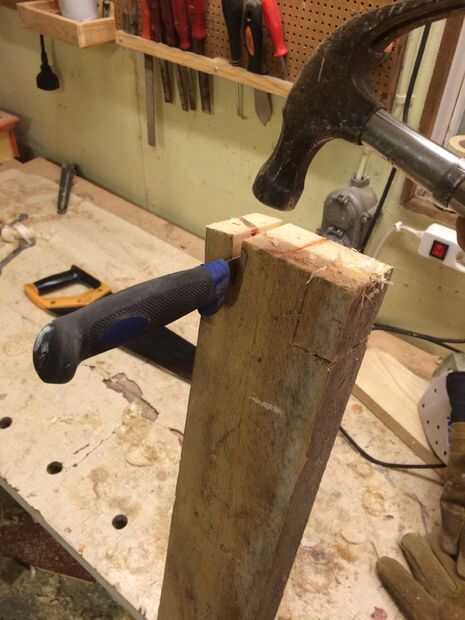 Luego cortar pequeños pedazos de la tabla longitudinal para que se ajuste correctamente en el caballete. Si el agujero el caballete es demasiado grande, se volverá débil y las piernas pueden romperse en el futuro si cargado.