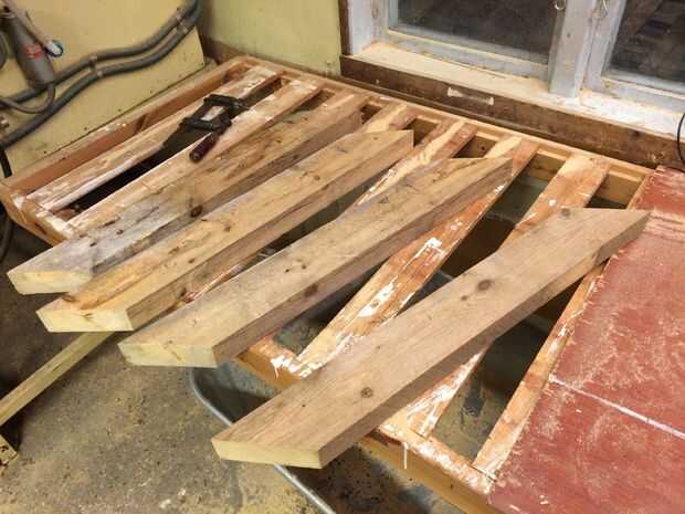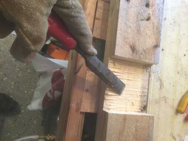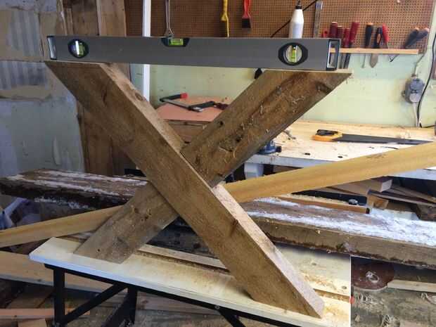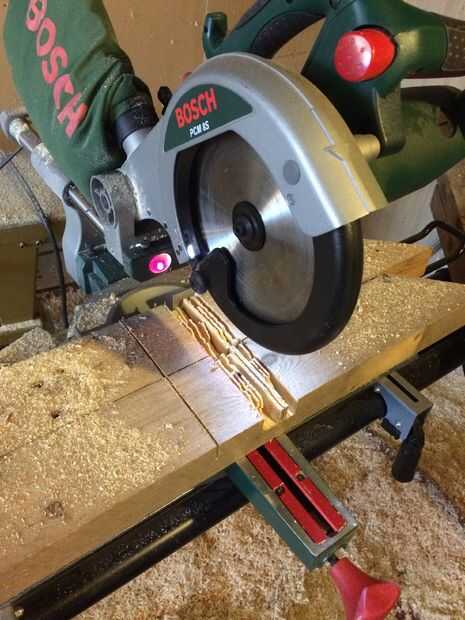 Cuando ha cortado 4 patas de igual largas, se ha visto cada extremo 45 grados como en la foto.