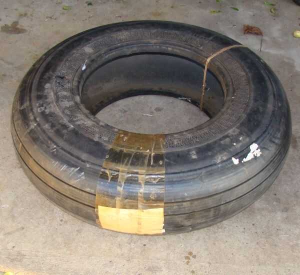 Encontrar un neumático fue otra historia. No quería gastar el dinero para un neumático nuevo, así que busqué una usada. Resulta que el borde que he comprado lleva una rueda (en este día y edad) tamaño inusual. Así que encontrar uno fue mucho más difícil de lo que pensaba. Pero, finalmente encontré un dueño realmente agradable de este tipo de plano que me ofreció un neumático viejo gratis si conduciría las cien millas a recogerlo!