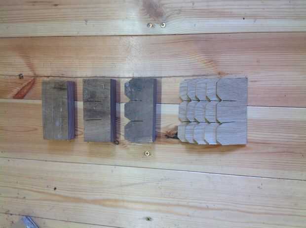Desde que la tabla original de ave, tengo un nuevo taller y puse tejas fieltros hexagonales en el techo. Lo de la culebrilla que no me había dado cuenta es que no tejas individuales sino hojas de 3 Tejas y superposición de la parte superior con la siguiente fila tapa las juntas y se parecen a las tejas individuales de fieltro. Así que pellizquen esta idea y va a hacer tejas en grupos de 3, pero usted podría fácilmente hacer entonces conjuntos de 4 o 6 dependiendo de la anchura de la madera de su donante.