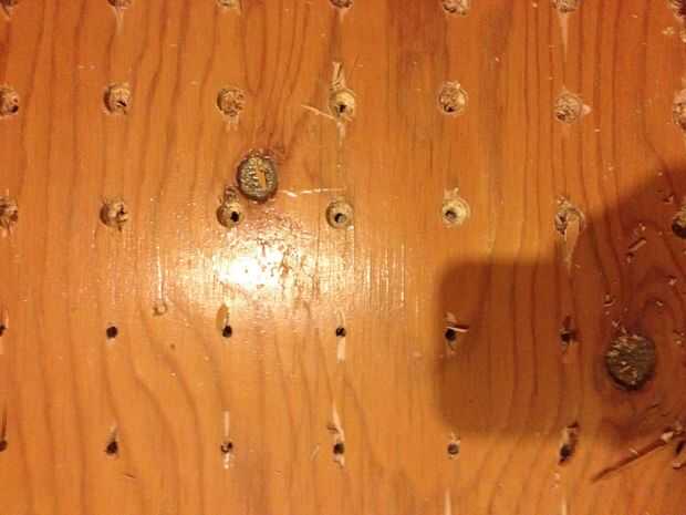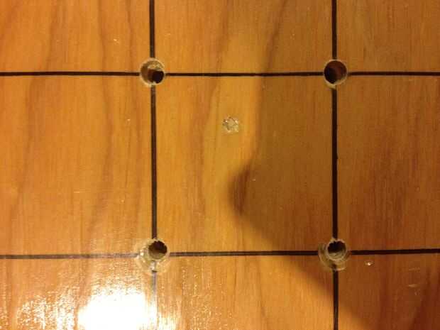 Los LEDs que compré tenían hilos que eran más cortos que lo normal (el vendedor de eBay no ha podido especificar esto o no hubiera comprado les). Si yo no avellane mis LEDs, los cables no hubiera sido accesibles desde la parte inferior de la tabla y no habría podido soldarlos juntos. No necesitas perder tu tiempo avellanado en la parte inferior si tu LED tienen cables que son lo suficientemente largos para acceder desde debajo de la mesa sin avellanar.