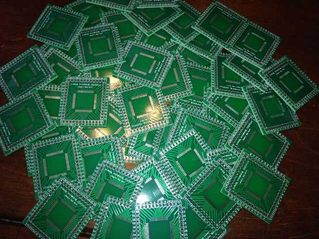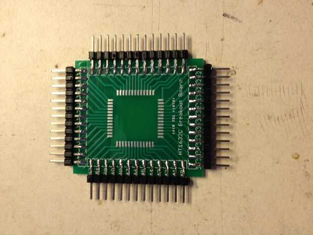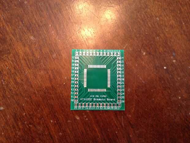 Si no sabes cómo hacer PCBs usted tendrá un tiempo difícil encontrar un tablero de arranque para los chips de HT1632C como son 14mmx14mm con espaciamiento de 1,0 mm entre pines. En este Foro, usuario mmcp42 ha creado un tablero de arranque y subido los archivos de eagle que permite tomar los archivos y enviarlos a un fabhouse de PCB donde pueden ser hechos profesionalmente. Esto es sólo una solución alternativa si estás veroboarding el proyecto.