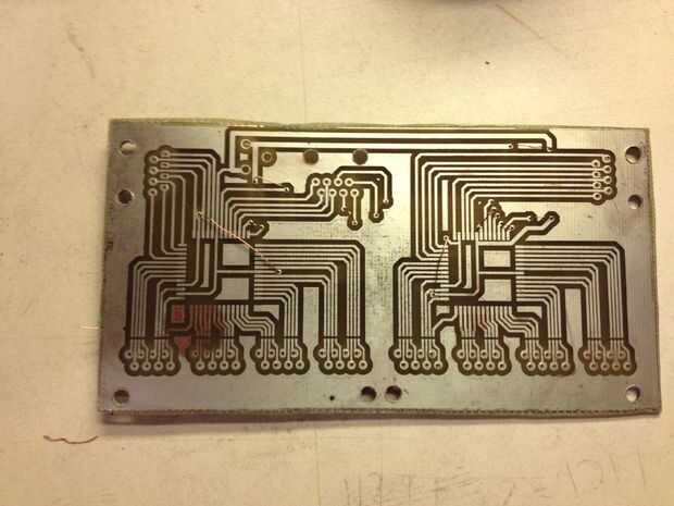 He subido un archivo pdf en este paso que contiene la imagen espejeada de la parte superior de la PCB y la imagen de la parte inferior de la PCB. Ya se encuentra a escala en el PDF para que usted sólo necesita imprimir a escala 1:1. Usé el método de transferencia de tóner para crear mi PCB. Si no está familiarizado con este método de fabricación de PCB, sólo tendrás que elegir de los muchos instructables que explican cómo funciona. Una vez al día sobre cómo hacer PCB con el método de transferencia de tóner (o cualquier otro método que funcione), vienen detrás, descargar el PDF y crear el PCB.