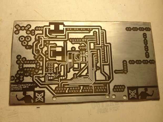 Para probar la red LED que sólo construimos, necesitamos crear el PCB principal y el controlador de LED de la red hasta el gancho. La primera vez que imprimí este diseño de PCB en papel brillante, me olvidé de desactivar "Escala de página" en Adobe Reader. No veo este error hasta que completamente había grabado la Junta y estaba tratando de alinear el PIC24HJ128506A en sus respectivos cojines. No hace falta decirlo, cuando hice el PCB siguiente me aseguré de que la impresión fue sólo escala 1:1 ya alineados el PIC en la nueva impresión antes realmente grabado la Junta. Este ir alrededor de él resultó exactamente como se suponía.