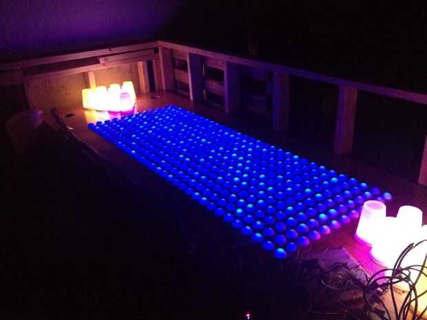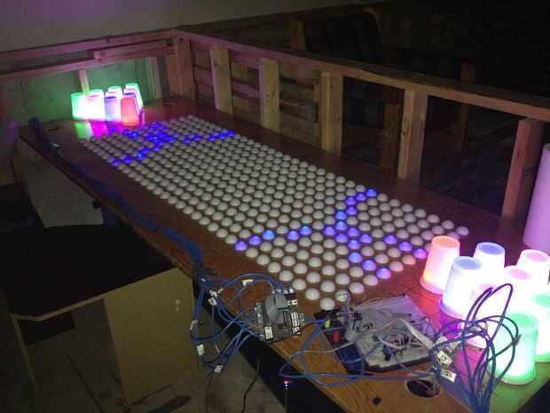 Ya no tenemos la hoja de lexan sobre la parte superior de las vainas, sin embargo, cumplí las tazas de cerveza boca abajo sobre la parte superior de las vainas RGB para añadir un efecto fresco. El color es tipo de lavar en las fotos, así que asegúrese de ver el vídeo a continuación para ver cómo vibrante se ve! El video los ciclos de cada pod a través de los colores por 10 defecto.
