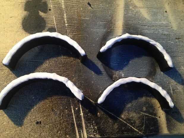 Haz los dos 11/16" largo 3" ABS tubo y cortar cada uno por la mitad. Luego tenemos cuatro mitades que utilizaremos para crear una protección alrededor de cada agujero de la arandela de bola para impermeabilización. Coloque aproximadamente 1/8" de silicona encima de cada guardia y deje que se cure completamente. Esto crea un sello contra la hoja de lexan sin nosotros tener que realmente adherirla a la hoja. De esta forma si la hoja de lexan obtiene dañada o demasiado rasguñada para arriba, es fácil de reemplazar y no tenemos que re-silicona cada guardia cuando instalamos una nueva hoja.