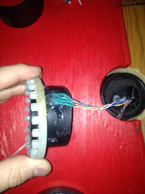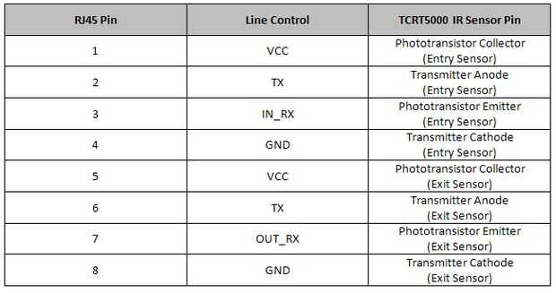 Lo último que tenemos que hacer es conectar un conector RJ45 a los cables del sensor IR. Las líneas de TX controlan de los transmisores infrarrojos en cada sensor IR, están conectados juntos en el PCB y no son independientes. La línea IN_RX controla el receptor de infrarrojos y detecta cuando una pelota de ping-pong entre el punto de entrada de la lavadora de la bola. La línea OUT_RX controla el receptor de infrarrojos y detecta cuando una pelota de ping-pong pasa por el punto de salida de la lavadora de la bola. Entre los sensores de la lavadora de la dos bola (entrada y salida) hay ocho cables del sensor IR, estos se combinan ambos en un conector RJ45. Pines 1-4 representan el sensor de infrarrojos de entrada y 5 Pins - 8 representan el sensor IR de salida. Hay un diagrama de conexión en las fotos.