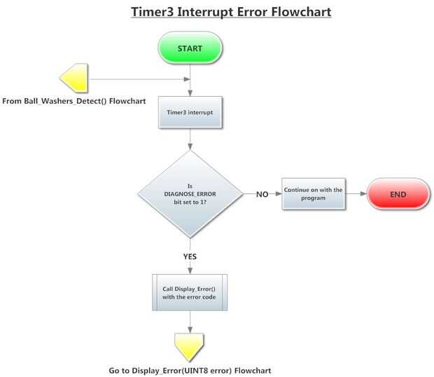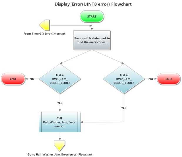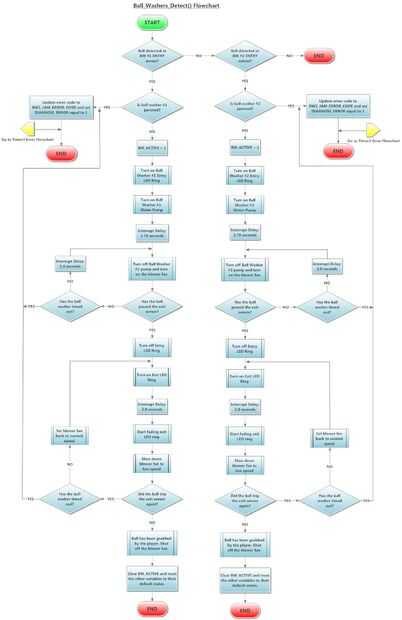 Programamos la tabla de modo que si una bola queda atorada en el tubo o si una pelota cae detrás abajo de la tubería, la lavadora bola se desactivará completamente hasta que el problema se ha resuelto y el jugador 'reinicia' la lavadora bola. Si un jugador intenta poner una bola en la lavadora de la bola cuando está desactivada, los anillos de bola lavadora LED destellará de cinco veces lo que indica que la bola lavadora está atascada. He adjuntado cuatro diagramas de flujo que explican cada decisión y el proceso que realiza el microcontrolador para manejar estos errores. Aquí es un breve Tutorial: