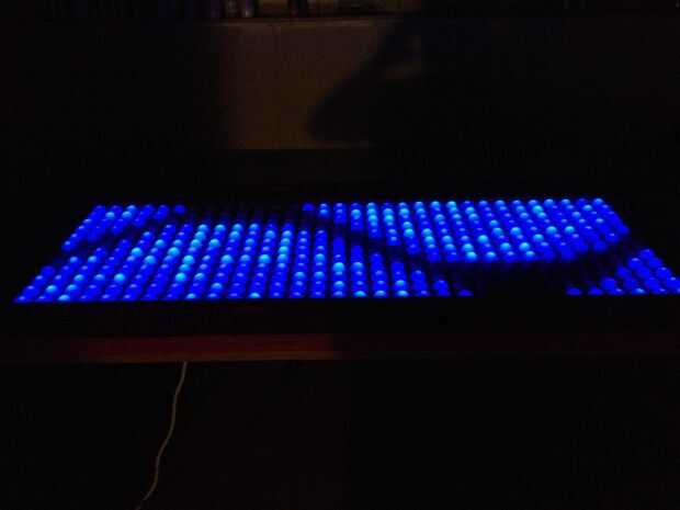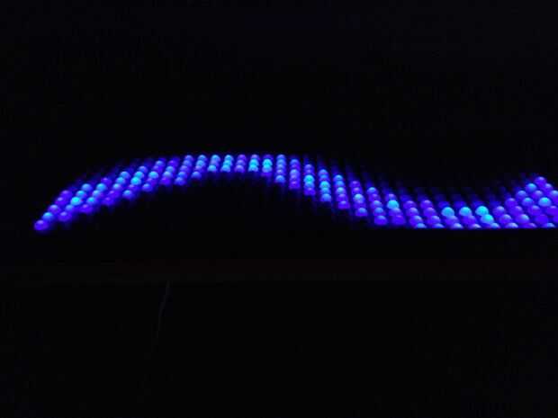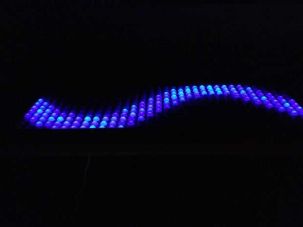 Se trata de una animación general que debe colocarse en la parte principal del programa. Esto permitirá la función actualizar las secuencias de animación cada vez que el programa recorra la rutina principal. Si el valor de 'estado' es igual a 1, hará que los píxeles LED que están encima de la onda senoidal. Si el valor de 'estado' es igual a 0, los píxeles LED que componen la onda senoidal será apagado mientras que los píxeles circundantes están todos encendidos. La amplitud y la velocidad de la onda pueden ajustarse en la llamada a la función de las variables 'amplitud' y ' delay. Esta función devuelve un 0 cuando la animación ha completado un ciclo completo de onda sinusoidal, de lo contrario devolverá un 1 para indicar que la animación está todavía en progreso.