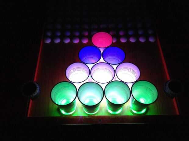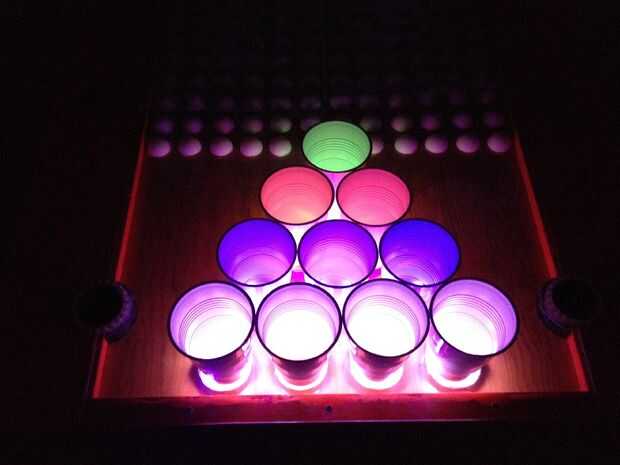 vamos a hacer una mesa de pong de la cerveza llamativo. La mesa se ilumina como tazas se eliminan y se reproducen sonidos de arcade de estilo antiguo.Este juegos eleva el arte sutil de PONG de la cerveza a un nuevo nivel. Un nivel deportivo. Una