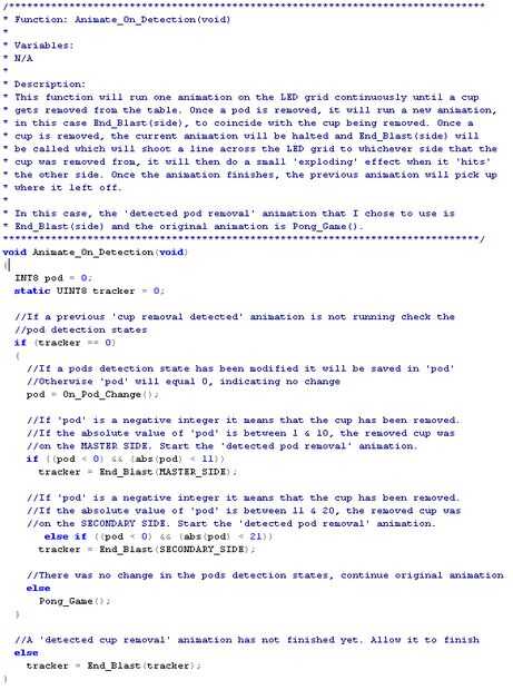 Cuando un jugador toma una taza de una vaina, esta función detecta y activar la animación de End_Blast(x). Dependiendo de qué lado de la taza fue recogida, la animación se 'dispara' hacia ese lado de la mesa de pong de la cerveza, concluir la animación y volver a la animación de Pong_Game().