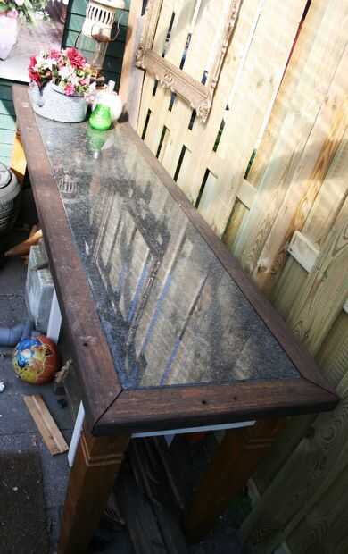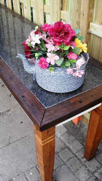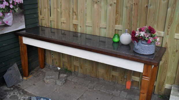 El propósito me vino más adelante cuando cambié mi puerta a una nueva y combina estas dos cosa con poco recibí de un vecino de madera dura (él tenía acostado detrás de su casa durante años, solía ser la base de su jardín shet) y las patas de nuestra mesa de pino viejo: éstas tuvieron que ser transformado a una mesa de jardín muy robusta.