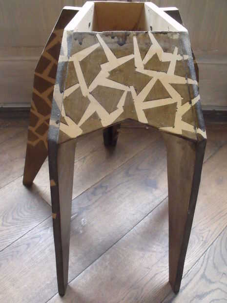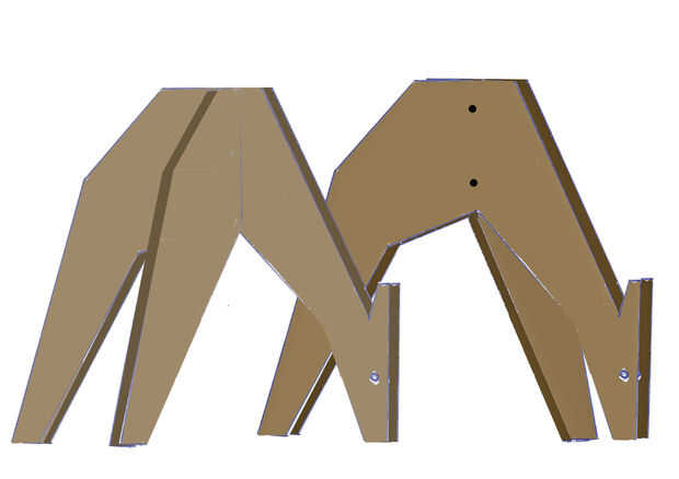 Anexe las patas al lado de las partes del cuerpo. Usé 2 tornillos un woodglue. No olvides hacer un agujero primero de lo contrario se dividirá el MDF. Asegúrese de que las partes del cuerpo posición verticales en el piso un ángulo de 90 grados.