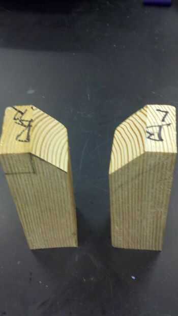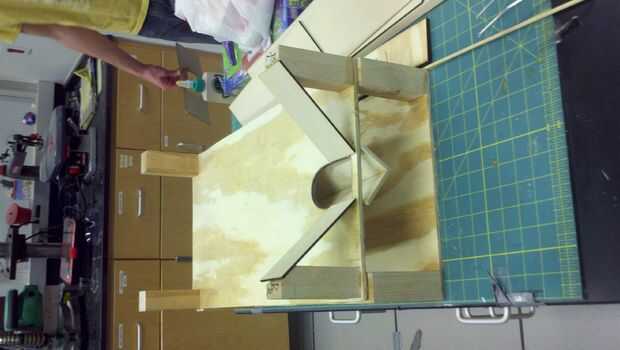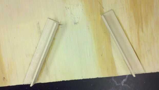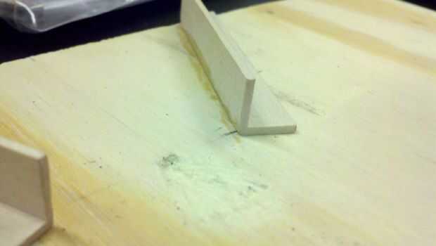 e. Pegue las dos piezas del basswood juntos en ángulo recto.