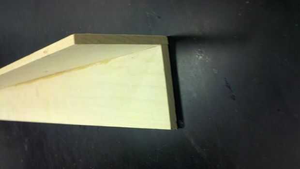 a. Corte una pieza de basswood 22 "x 2" y otro es 22 "x 15/8". Pegue la tabla más estrecha a la cara del tablón más ancho para hacer la rampa de retorno de bola