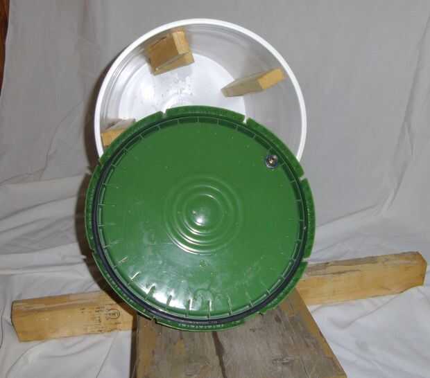 Usé una lezna del rasguño y los agujeros perforados en la línea de una pulgada o dos de la parte inferior y en la parte superior para atornillar las costillas dentro de la cubeta.