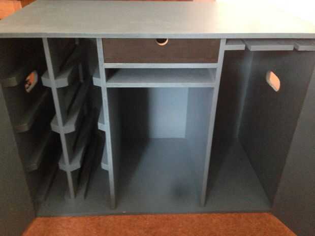 Construcción de la sección central (repisas horizontales, portavasos y particiones verticales). Esto se hace colocando la bandeja inferior 340mm por encima del fondo, estante superior ~ 50mm superior dando alrededor de 30mm para el picar del tablero y el sostenedor de cristal alrededor de 20mm por debajo de la parte superior.