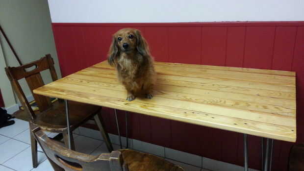 aquí) del tipo de tabla que yo quería pero eran todos muy caros, que van desde alrededor de $500 a más de $2000. Esto fue demasiado lejos fuera de mi rango de presupuesto, sobre todo porque podrían tener las patas de la horquilla que quería usar a un precio bastante razonable en línea. Después de eso simplemente era encontrar algo agradable de madera mirando que manejaría el diseño minimalista bien. Me gusta también mucho la idea de utilizar madera recuperada por varias razones. Así que fui a mi proveedor favorito usado de materiales de construcción,