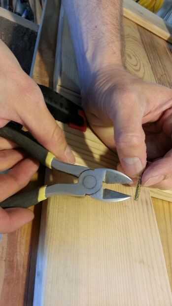 1-1/4 tornillos era demasiado cortos y 1-1/2 tornillos estuvo peligrosamente cerca de pinchar la parte superior de la tabla. Decidí que la mejor manera de asegurarse de que me metía el tornillo más de mi esfuerzo, era para cortar las puntas de las inchers de 1-1/2. Cuando su Consejo es comenzar con sólo 3/4 de pulgada de grosor, desea que todos la tornillo superficie que puede obtener.