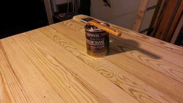 Aplicación de poliuretano, para aquellos que nunca han hecho, básicamente es igual a la mancha. Inmersión y tiempos... con el grano. Cubrir totalmente, pero no se aplican más. Si quieres más, añadir otra capa más adelante una vez que ha puesto en la primera. Mente los bordes, si se acumula en gotas en la parte inferior de los bordes se endurecen en una espinilla de mesa impenetrable y su mesa será siempre avergonzada de su tez.