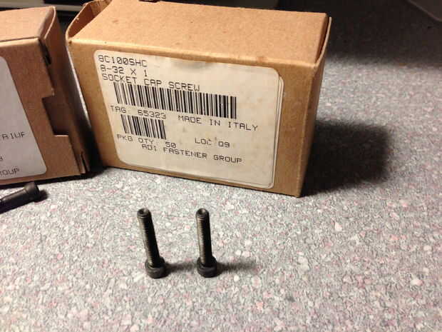 Sujetadores: compré una caja de 50, "8/32 cabeza hueca tornillos de 1" largo"que vienen en un acabado negro de molino o acabado liso