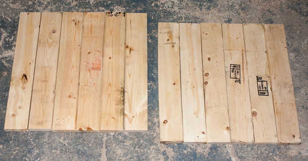 He solucionado todo mi madera de palet y había seleccionado 6 piezas que eran similares en aspecto (color y tipo), anchura (2.5") y grueso (1/2").