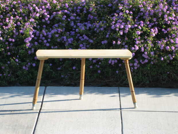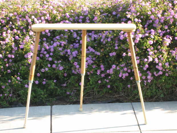 La clave de este diseño es una pata telescópica construida de bambú, de madera espiga y conectores EMT. La altura se ajusta de cerca de 18 a 32 pulgadas, pero pueden variar las dimensiones para adaptarse a sus necesidades.