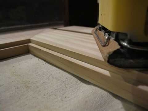 Usando un router de mano, corte un rebajo de 1/4 "x 1/4" en el marco interno de vidrio en. Alternativamente, usted puede hacer unos cuantos pases sobre una mesa vio antes el pegamento-para arriba. También es un buen momento para empezar a lijar con grano 120 y derribar los bordes exteriores de la tabla. Hacer no arena que su barbilla se corta, ya que esto podría debilitar el apoyo de la tapa de cristal.