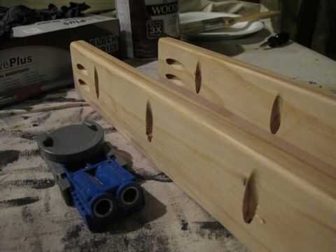 Utilizando el Kreg jig, perfore agujeros de ocultación en la parte interior de la plataforma. Tendrá agujeros hacia las piernas, así como los agujeros frente a la mesa. Se desea lo que será la parte inferior del faldón sólo suavizar un poco el borde de la arena.