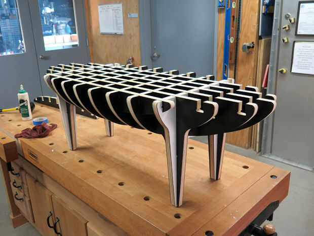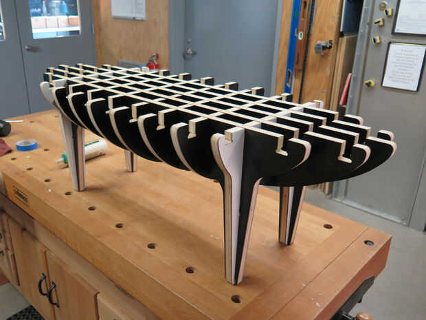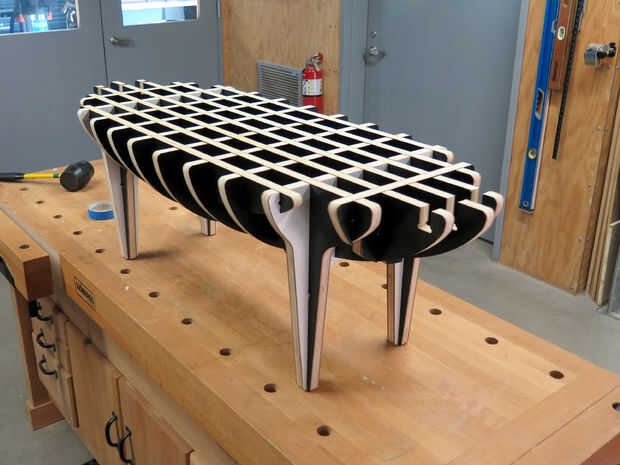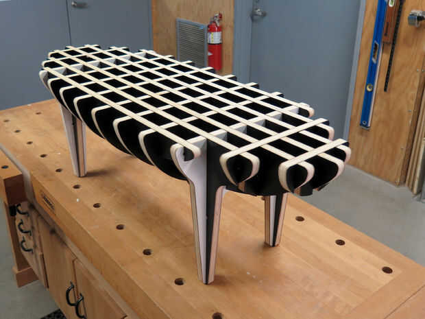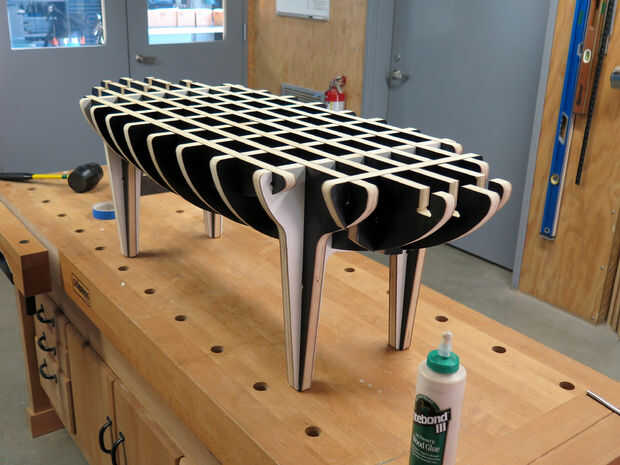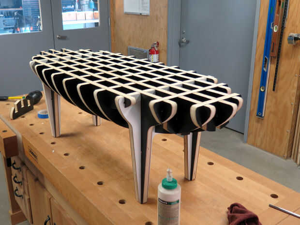 aquí es un banco de almacenamiento de información de zapato para una entrada. Fue corte de 3/4, 1/2 y 1/8 pulgada de madera contrachapada con un router CNC y corte por láser.El objetivo de este diseño era un banco rígido, ligero. También debe ser l