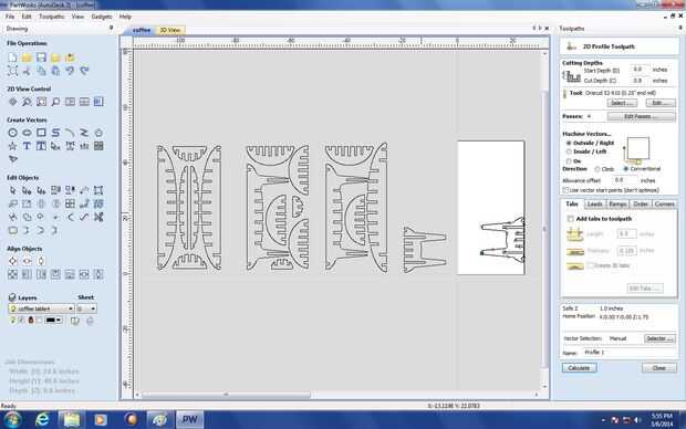 Nota sobre la creación de pestañas: Son piezas de su material que no corte para sostener las piezas en su lugar. Ya que tuve un buen montón de piezas a cortar y no quiero hacer un montón de trabajo post-procesamiento decidí no hacer fichas. Si usted tiene una mesa de trabajo con vacío entonces esto es grande porque no necesita las lengüetas de todos modos.