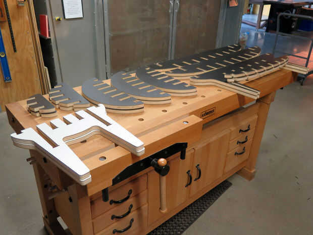 aquí es un banco de almacenamiento de información de zapato para una entrada.  Fue corte de 3/4, 1/2 y 1/8 pulgada de madera contrachapada con un router CNC y corte por láser.El objetivo de este diseño era un banco rígido, ligero.  También debe ser l