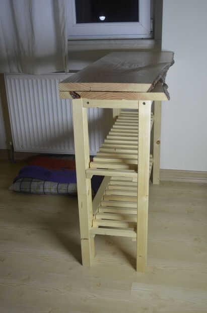 Es fácil de montar. Sólo necesita encontrar un buen aspecto de madera natural para arriba. Y no saltar para pulirlo (=