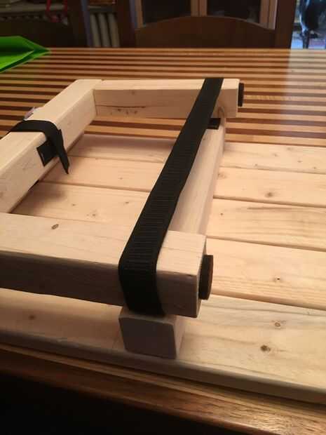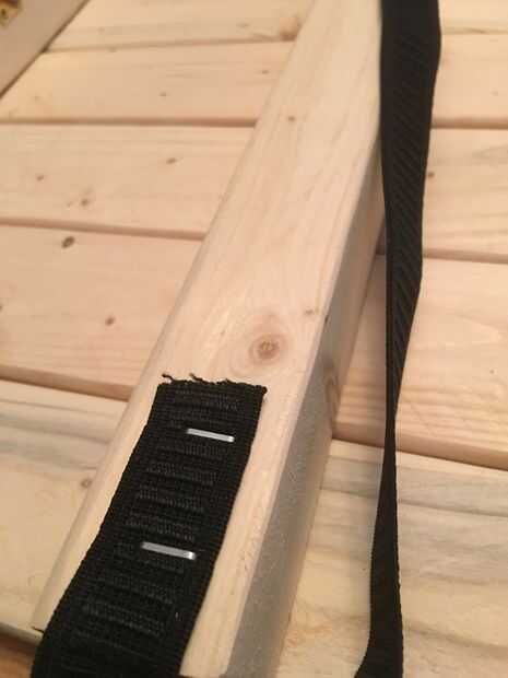 Cintas elásticas de ATE (con pistola de grapas) a los soportes interiores para mantener las piernas en posición cuando se dobla para arriba para el almacenaje. Las correas deben ser lo suficientemente apretadas como para que se mantenga las piernas hacia abajo tanto como sea posible.
