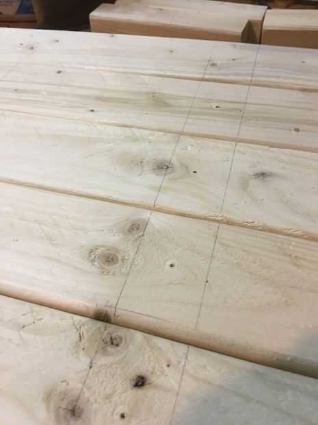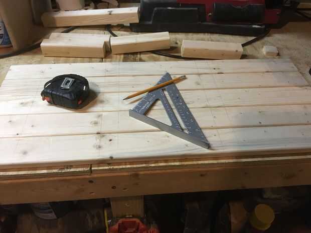 Una vez que los soportes marcados, taladre agujeros pilotos. Coloque los agujeros en el medio donde serán los soportes. (Sólo usé un tornillo por el pedazo de madera superior por soporte). Me gusta hacerlo debido a las líneas de lápiz y cualquier marca de perforación que se hace desde la parte inferior.