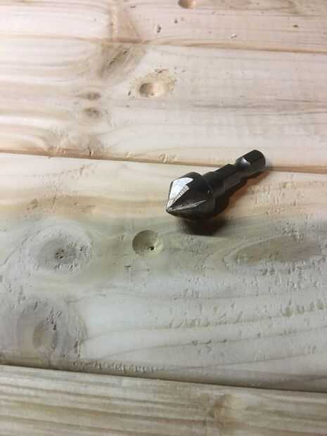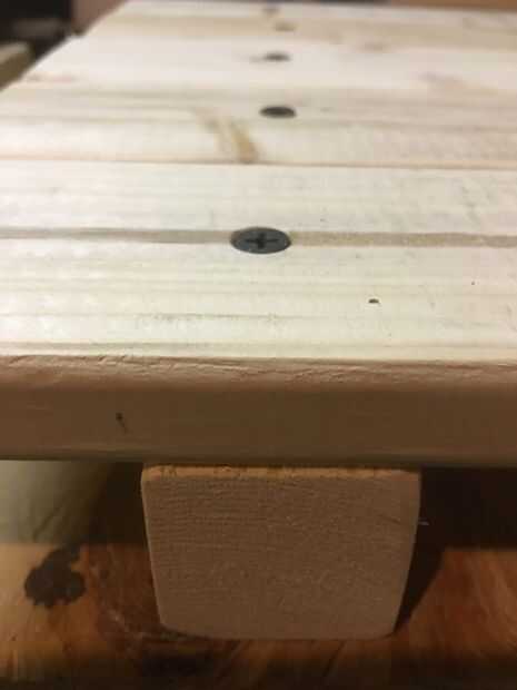 Voltear las piezas para la parte superior quede hacia arriba. Utilice un fregadero contra para hacerla así que la cabeza del tornillo no será sobre la superficie de la parte superior. Una vez hecho esto, coloque los soportes con los tornillos de tamaño adecuados (yo usé 1-5/8"). Marqué los lados de la parte superior para alinear los soportes por debajo.