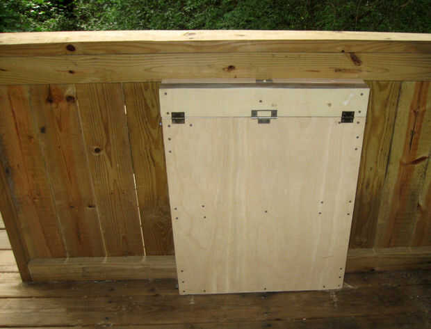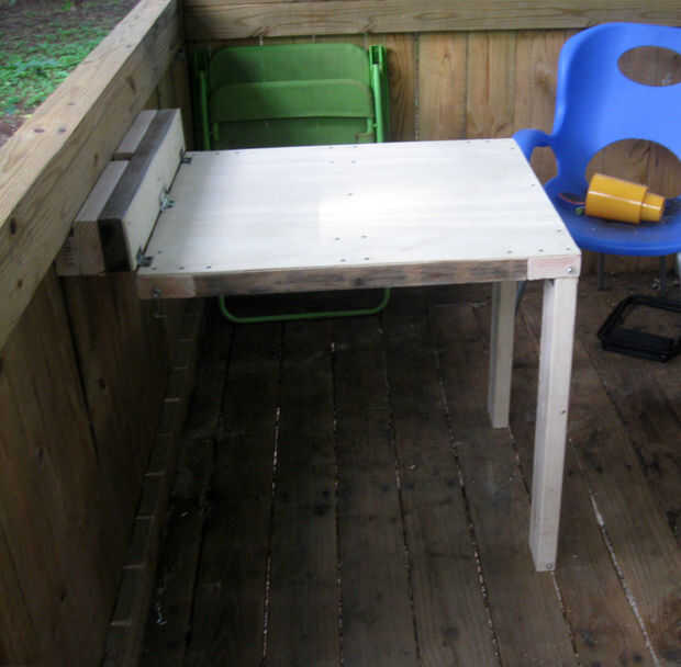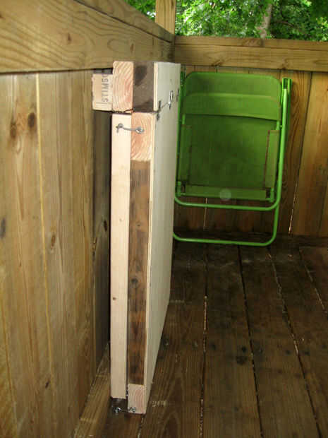 Put it wherever you want. Utilice un tornillo o tornillos para sujetar la parte superior a la pared. Como ya he mencionado, lo pongo en mi casa del árbol hermanos, pero un tamaño diferente trabajaría para un taller o cualquier otra cosa. Además, he añadido un cierre para que no caiga abierto en su propia.