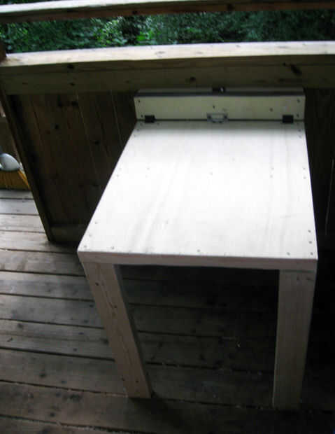 Este es un instructivo para una simple mesa plegable del proyecto. Un poco funciona como una bandeja de TV gigante, da estabilidad y espacio para trabajar pero cuando no esté en uso, puede ser doblado para arriba y colocado fuera del camino. Los mate