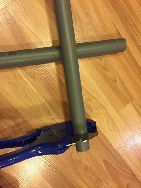 Me gustaría apoyar la cuchilla en el suelo y luego apuntalar el extremo pesado de la pipa que estoy cortando en otro poco de tubo. Esto evita que la tubería de corte recto y nivelado.