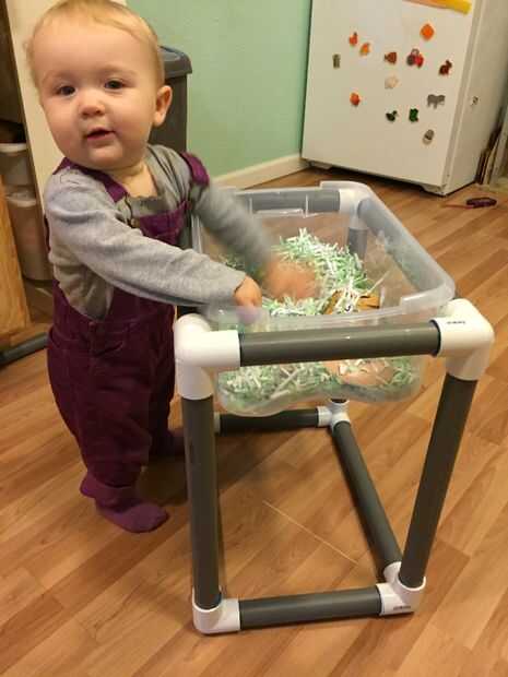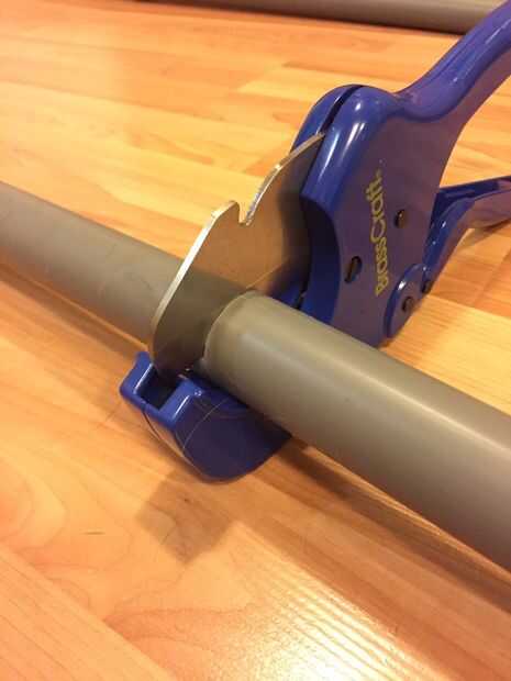 Tengo un joven 1-años de edad, así que corte 4 16" piezas, pero si se trabaja con niños mayores, las piernas será más largas. No necesita pegar las piernas en su lugar si se quiere actualizar a las piernas más largas cuando el niño va creciendo. Si va a crear esto para un determinado niño, medida desde el piso a la axila de su hijo, el sustraer una pocas pulgadas. Se trata de cuánto tiempo debe cortar las tuberías.