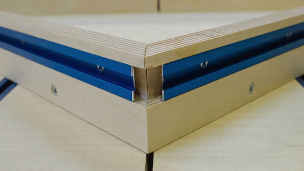 Comience por cortar un triángulo grande para la base de la ingletadora. Conocer su trineo es ahora cuadrado esta es una tarea rápida. Pude entonces copio algunas piezas al ancho para actuar como mi cercas del inglete. También corté un profundo surco de 3/4 "x 3/8" en ellos para aceptar algunos track de ranura de inglete. Luego puede cortar a la longitud con inglete de 45° en ambos extremos y atorníllelos a la base de trineo de inglete. Mantenía el aluminio hacia atrás de la hoja 1/8" en ambos lados porque tengo una sierra que salta un freno cuando entra en contacto con ningún material conductor. No quería la sierra accidentalmente desplegar el freno. También he añadido un guardia donde la lámina pasa a través de la inserción de inglete. Que acabo de hacer de algún material de sobra.